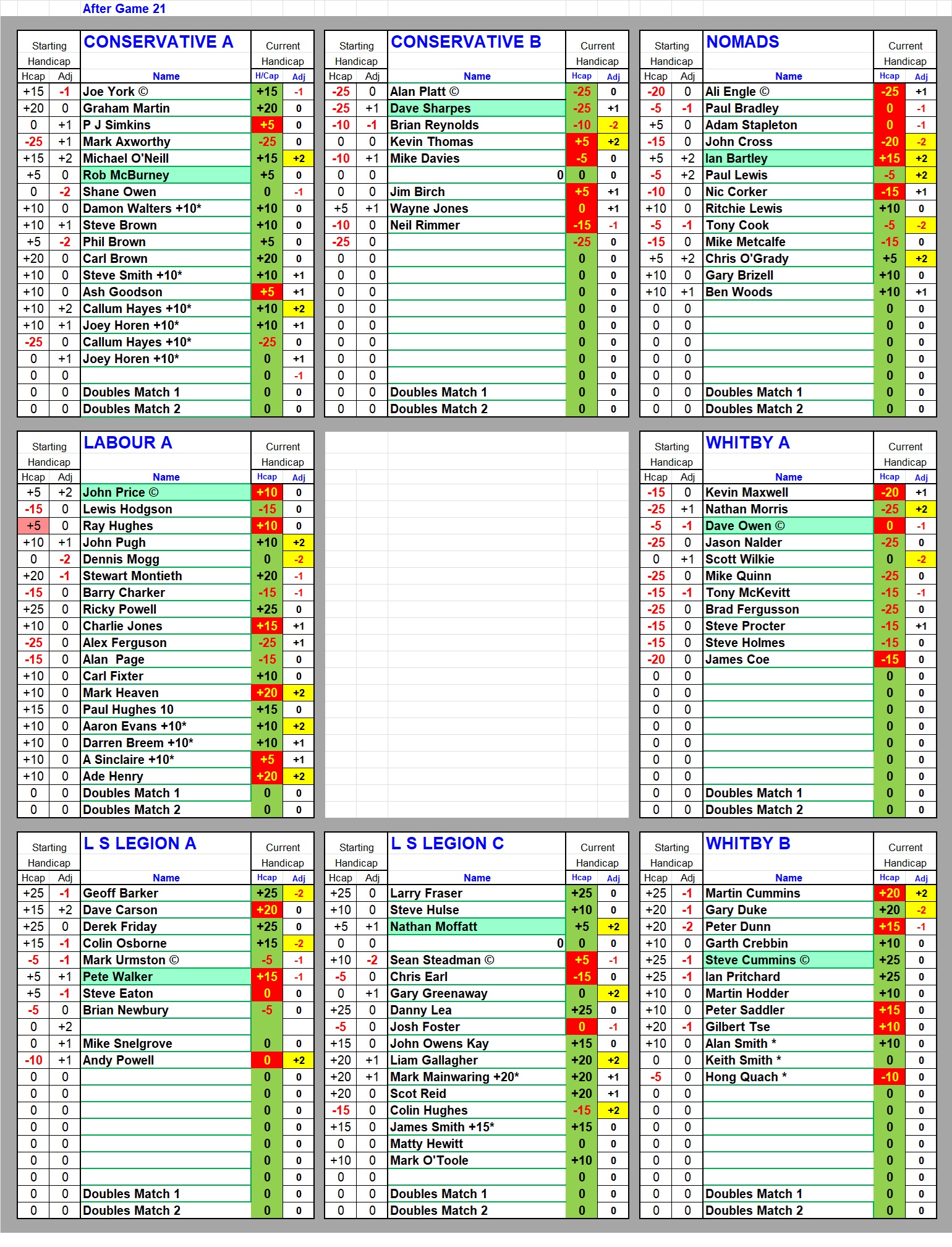 Winter 2021-22 – Handicaps